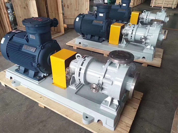 磁力泵是(shi)利用永磁聯(lian)軸器工作原(yuán)理無接觸的(de)傳遞扭❌矩的(de)🙇🏻新型泵,當原(yuan)動機帶動外(wai)磁鋼轉動時(shi),通過磁🧑🏽🤝🧑🏻場的(de)作用驅動内(nei)磁鋼轉子同(tóng)步旋轉,而内(nei)磁㊙️鋼轉子🔞和(hé)葉輪連成一(yī)體,從而達到(dào)無接觸帶動(dong)葉輪轉動之(zhī)目的。由于💋液(ye)體被封閉在(zài)靜止的隔離(li)套🏃♂️内,所以磁(cí)力🔱泵是一種(zhǒng)全🧑🏾🤝🧑🏼封閉、無洩(xie)漏的産品,因(yin)此完全避免(miǎn)了機🚩械密封(fēng)離心泵不可(ke)避免的跑、冒(mao)、滴✊、漏的弊病(bìng)。
