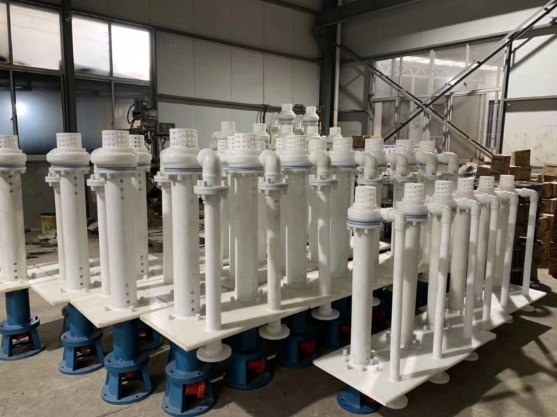 氟塑料液下(xia)泵的吸入口順(shun)為沿軸線方向(xiang)的底部,出液口(kou)與軸線平行。